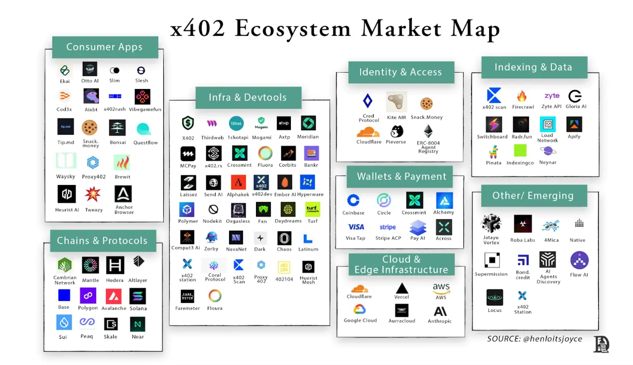 x402 的有趣之处在于,它目前并非单一实体,而是由类似真实支付系统(Rail)中的各种层级构成。任何通过 Cloudflare Agent Kit 构建 AI 代理的人都可以创建按操作收费的机器人。