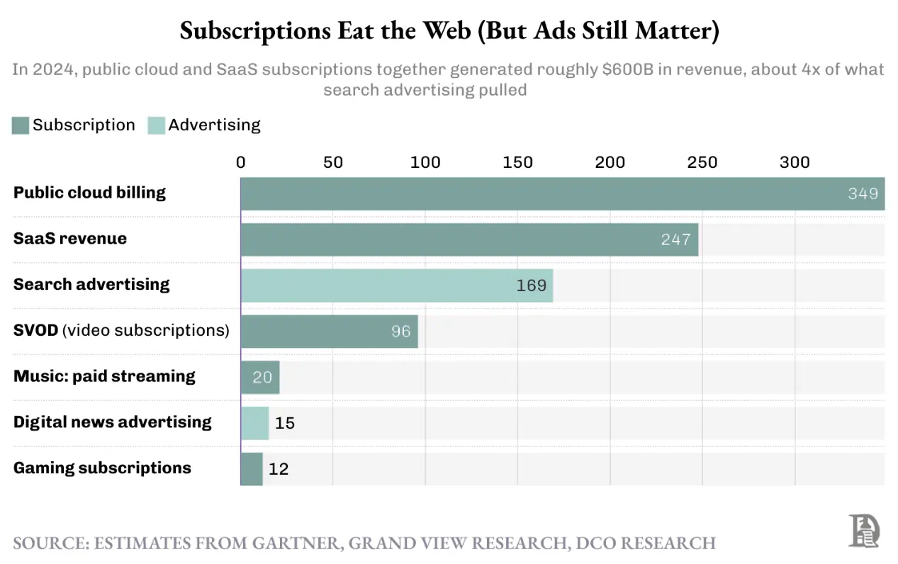 亚马逊、Spotify、网飞、谷歌和Meta,成为了聚合平台,他们汇集了消费者的需求,并将随意的浏览行为转变为习惯。他们将这些习惯定价为订阅服务。