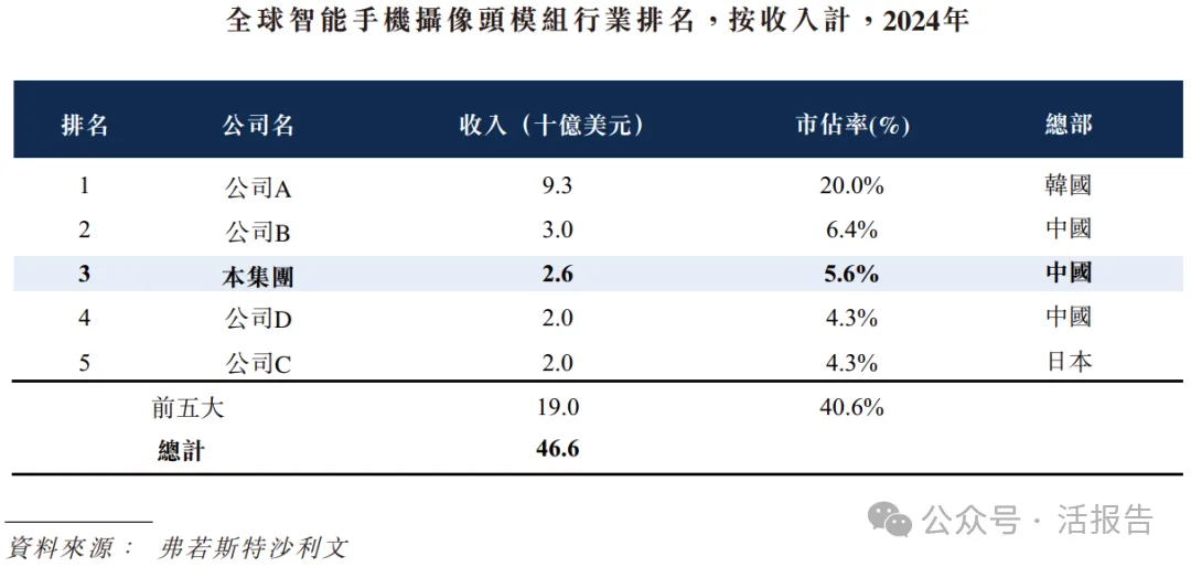 (ii)按收入计,2024年在全球中高端智能手机摄像头模组行业排名第二,在中国厂商中排名第一,市场份额为6.3%;