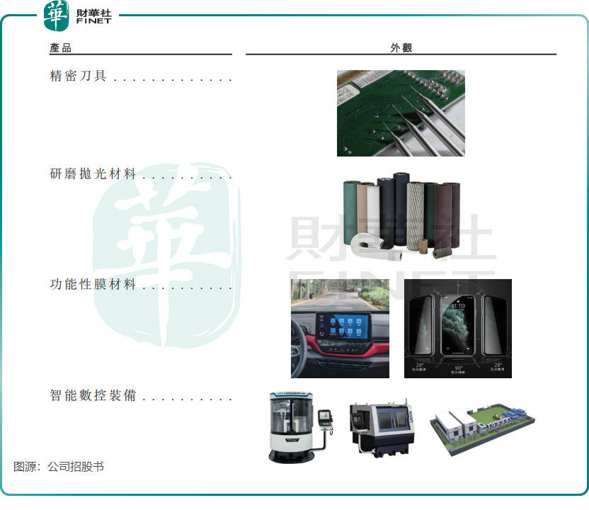 公司实现了“工具+材料+装备”全产品线布局,产品组合涵盖四大类,包括精密刀具、研磨抛光材料、功能性膜材料、智能数控装备。这些产品服务于AI服务器、具身机器人、半导体及集成电路相关应用、低轨卫星通信、高端装备制造及智能汽车,以及消费电子、通讯及工业控制等行业。