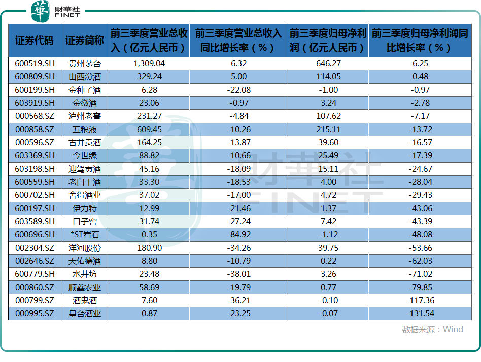 而五粮液(000858.SZ)就更惨烈一些,其前三季度的表现堪称“暴雷”。