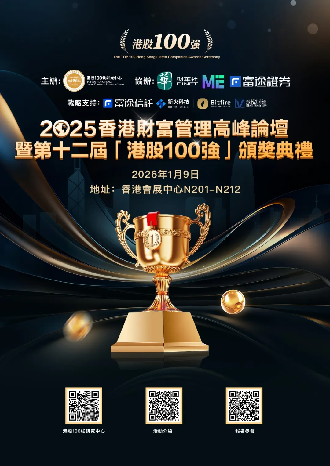 万众期待,但因为灾情延后举办的2025香港财富管理高峰论坛暨第十二届「港股 100 强」颁奖典礼,将于 2026年1月9日如期重启。