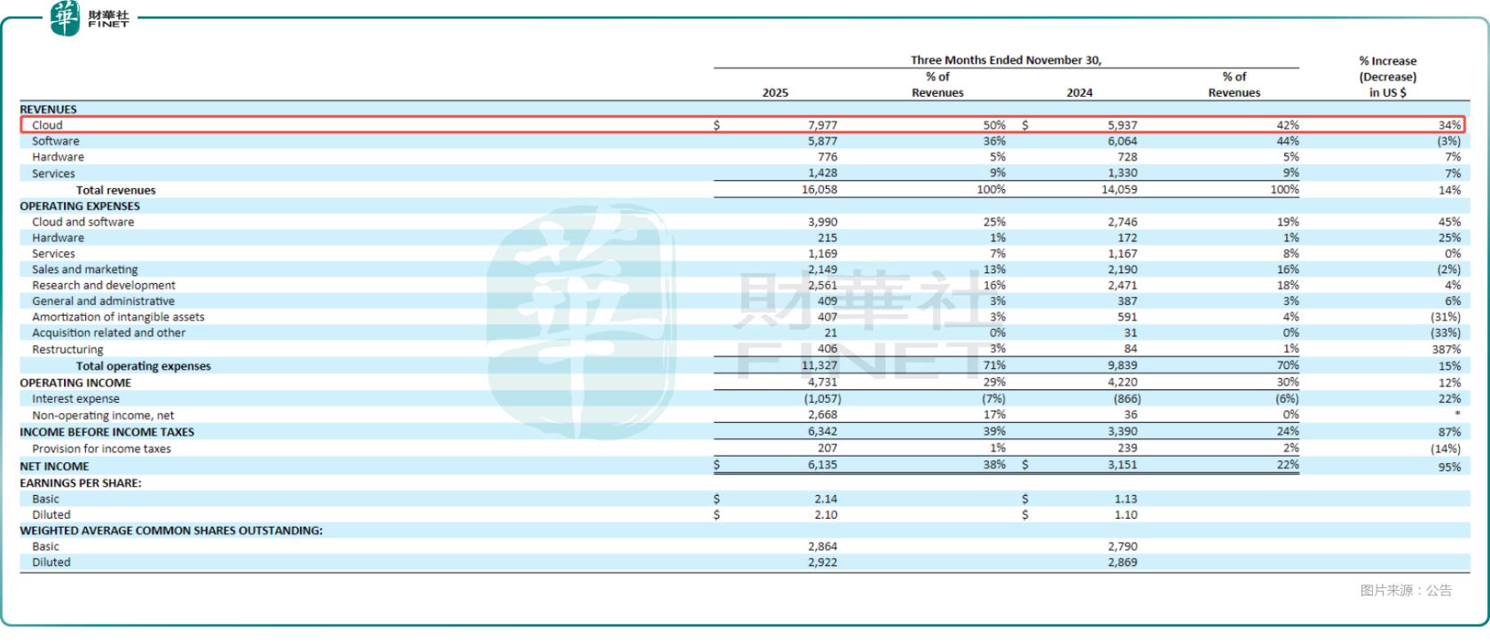 此外,第二财季,软件业务的营收为59亿美元,以美元计同比下降3%,以固定汇率计同比下降5%;硬件业务的季度营收为8亿美元,服务业务季度营收为14亿美元,均录得同比单个位数增长。