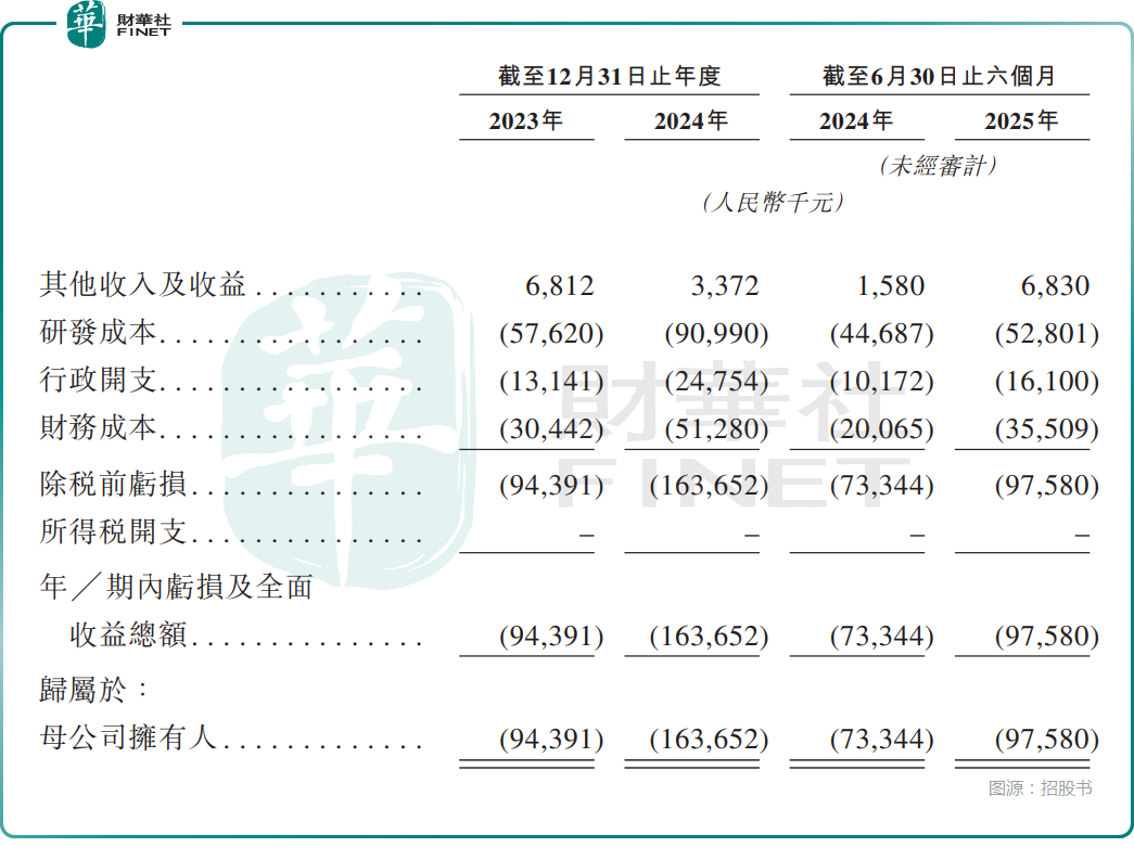 另外,2023年、2024年及2025年上半年,君赛生物的研发开支分别为5762.0万、9099.0万元、5280.1万元;财务成本分别为3044.2万元、5128.0万元、3550.9万元。