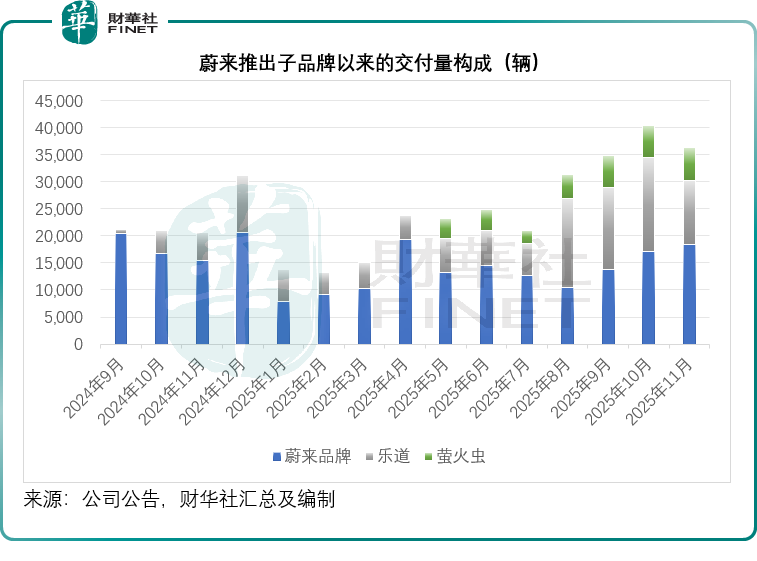 见下表,自去年9月推出乐道、今年4月推出萤火虫系列后,乐道与萤火虫成为了撑起蔚来交付量增长的重要力量。