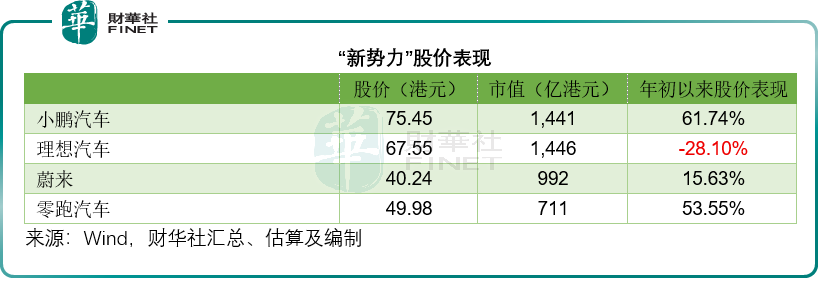 这或也是其最新业绩转差和股价下跌的原因,见下表,今年以来理想的股价累跌28.10%,其中最近60个交易日的累计跌幅达32.52%,是“新势力”当中唯一今年股价下跌的公司。
