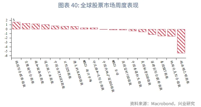 外汇市场方面,在美联储偏鸽基调和重启购债计划的背景下,美元指数走低,一度跌至98.10附近。在亚太货币中,泰铢本周表现最佳,创2021年年中以来的最强水平。新西兰央行暗示宽松周期接近尾声,新西兰元近期表现不俗。澳元本周小幅震荡上行,澳联储偏鹰的前瞻指引支撑澳元兑美元升值,但随后11月偏弱就业数据拖累澳元。马来西亚林吉特兑美元汇率创四年多来的最高水平。韩元本周延续了最近的贬值趋势,港元兑美元本周在7.78-7.7850区间波动,未来如果联储持续降息和港股市场交投改善,港元仍有较大概率逼近强方兑换保证。人民币兑美元持续升值。