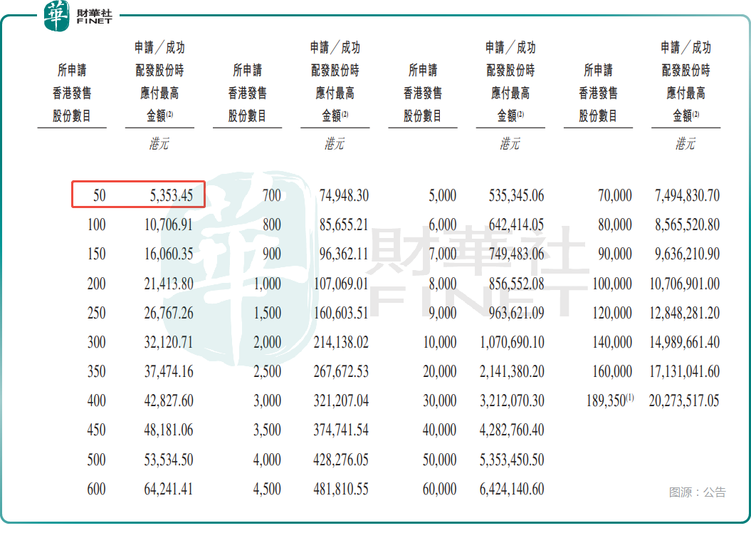 此次的每股发售价介于80.0港元至106.0港元,假设超额配股权未获行使,按发售价中位数93.0港元测算,预期募集资金净额为约3.07亿港元。