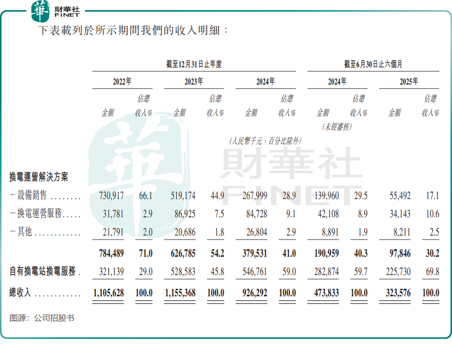 这一变化导致奥动新能源的产能利用率大幅下滑,换电站生产利用率从2022年的80.7%骤降至2025年上半年的23.4%,换电模块利用率也从89.7%跌至23.9%。产能闲置推高了公司单位成本的同时,设备销售收入也连续三年萎缩,到2025年上半年仅占总营收的17.1%。