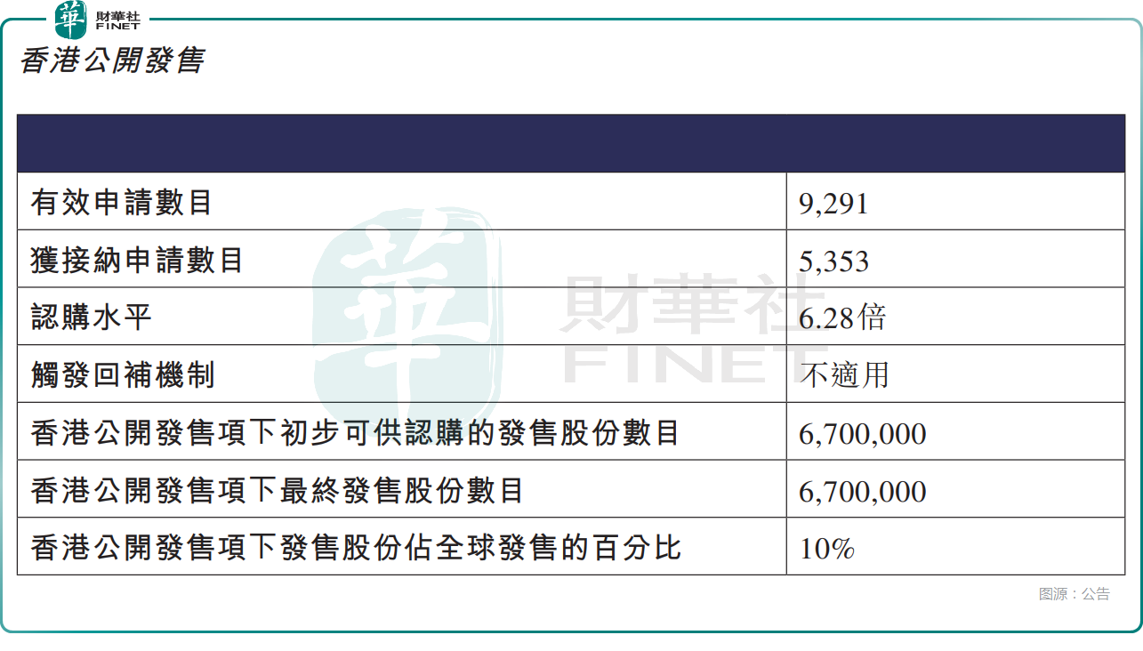 从日前招股阶段的表现来看,香港公开发售方面,明基医院获6.28倍认购,公开发售的发售股份最终数目为670万股股份,占比约10%。合计共获得约9291份有效申请,受理申请数目5353份,一手中签率达到了50.01%。
