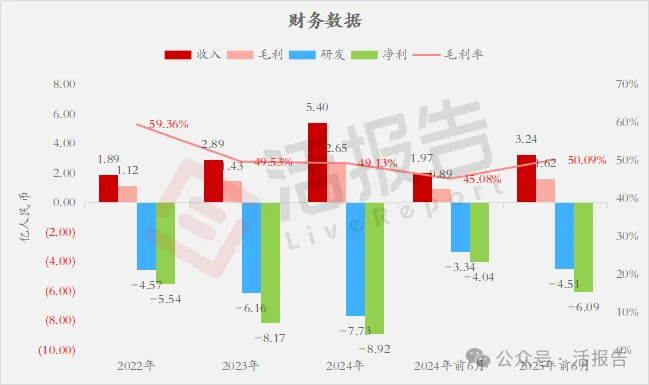 收入分别约为人民币1.89亿、2.89亿、5.40亿、1.97亿、3.24亿,2025年前6月同比+64.24%;