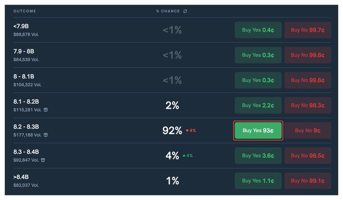 这意味着,对于那些在 0.93 位置大仓买入“8.2–8.3B=Yes”的筹码来说,他们真正对赌的,不是圣诞老人“送出多少礼物”,而是一个开发者会不会在上线前最后一次 commit 改掉那串数字。