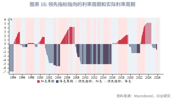 更进一步,如果以该领先指标斜率的正负变化来预示美联储利率周期的轮动,可以发现,领先指标指向的利率周期和实际利率周期有较高的匹配度。2020年后美联储的政策调整的滞后性更加明显。当前领先指标显示2025年末至2026年初降息窗口短暂关闭,此后至2026年7月降息窗口依然开启,这和当前市场预期一致。