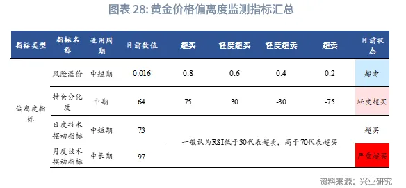 金银比中期仍有下行空间,短期下行速率过快,面临超跌反弹。黄金市场情绪平稳,上涨主要由外盘拉动,境内黄金呈现折价。境内白银溢价达到1400元/克,后续面临回落风险。
