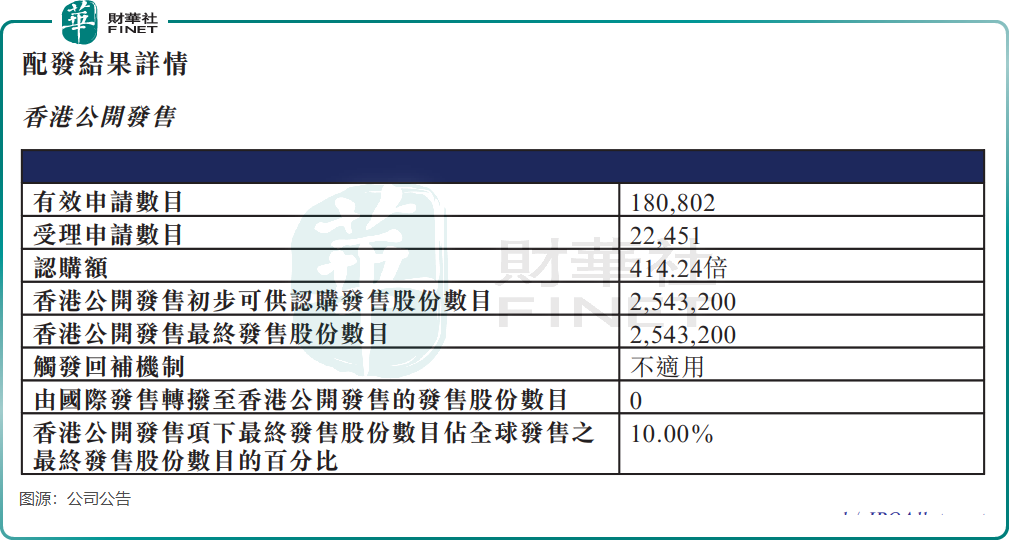 市场认购情绪火热。配发结果显示,香港公开发售获414.24倍认购,国际发售也实现10.68倍认购,反映出全球投资人对中国GPU国产替代进程的认可与信心。
