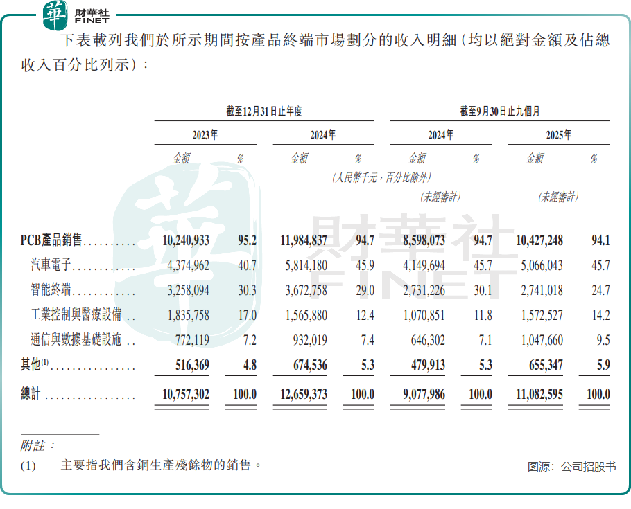 在消费电子与工业控制领域,景旺电子同样构筑了护城河。全球前十大智能手机品牌中,七家与其建立合作关系,其折叠屏手机的刚挠结合板、AR眼镜的超薄软板等高端产品,成功打破海外垄断;工业控制与医疗设备领域表现更为强劲,2025年前三季度收入同比激增46.8%,形成“汽车为核、多领域协同”的稳固业务格局。