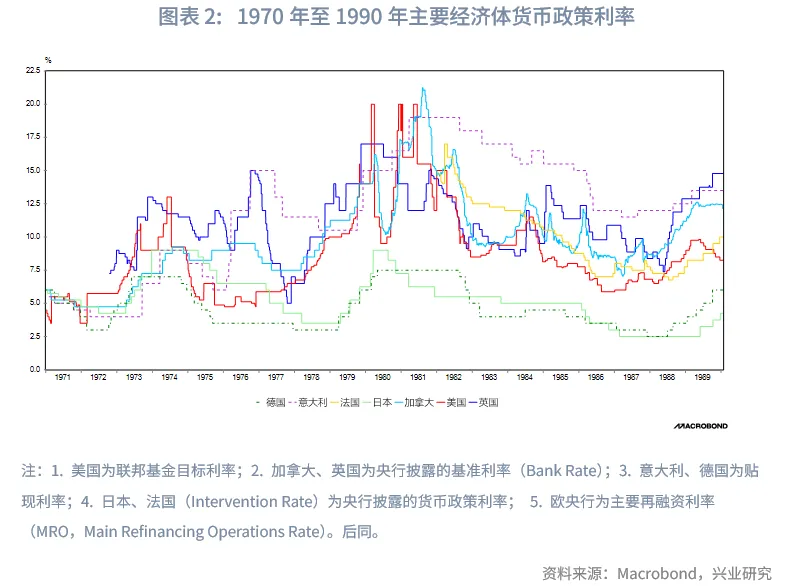 不同于英国主导的第一轮债务周期向美国主导的第二轮债务切换,这一次全球并未出现新旧利率锚的切换。美国凭借更强的经济韧性率先走出危机,继续稳居全球资金的核心位置。与此同时,英国、法国、意大利等国在1980年前后被迫同步大幅加息以抵御资本外流,货币政策独立性大幅下降;德国、日本则因制度差异展现出相对独立的轨迹。虽然欧洲主要国家在1970年代改为浮动汇率,但其“依附路径”明显分化:英国因伦敦是全球离岸美元中心,使英镑与美元高度联动;法国和意大利加入欧洲货币体系后,其利率与汇率格局逐渐向德国靠拢。结果就是,美国利率成为全球层面的主锚,而德国在欧洲区域内形成“次级锚”(Giavazzi & Giovannini, 1989;Bordo & MacDonald, 2005)。
