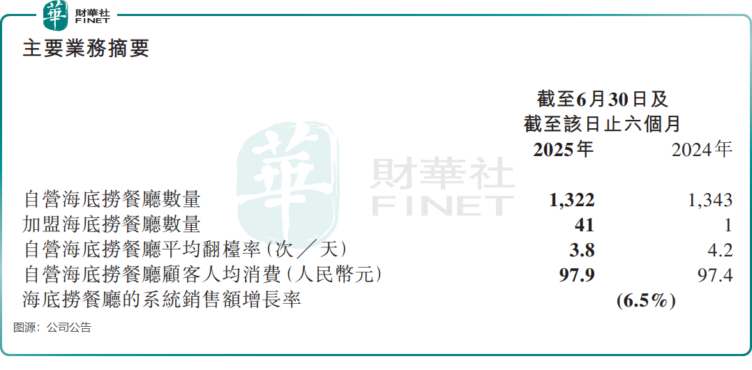 作为餐饮业生命线的翻台率,在2025年上半年降至3.8次/天,较2024年同期的4.2次/天显著下滑,客流与客单价增长双双疲软。公司门店布局方面也继续处于收缩调整期,2025年6月底自营海底捞餐厅数量为1322家,同比净减少21家餐厅,依靠自身资本规模扩张拉动的旧模式难以为继。