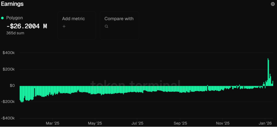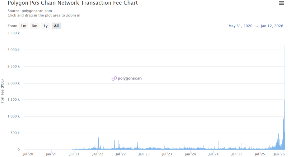 自2026年初以来,Polygon已累计产生高于170万美元的手续费,并销毁超过1,250万枚POL代币(约150万美元)。