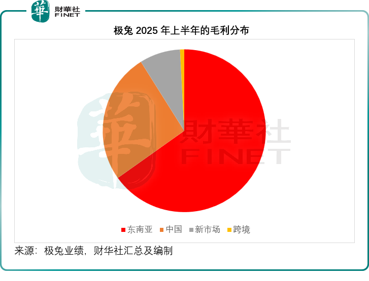 东南亚是极兔最主要的收入及利润来源,2025年上半年,东南亚业务贡献收入同比增长29.63%,至19.70亿美元,占其总收入的35.83%,但分部毛利则达到3.51亿美元,占其总毛利的65.16%,上半年毛利率达17.81%,是其中国业务毛利率4.45%的4倍,东南亚分部经调整息税前(EBIT)利润则达到2.35亿美元,抵消了新市场的亏损。