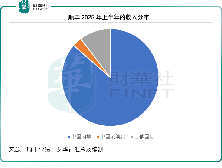 从2025年上半年业绩来看,中国内地占了顺丰总收入的86.43%,港澳台占了3.20%,而海外市场则占了10.36%,较上年同期有0.02个百分点的增幅。