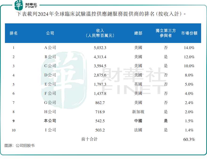 招股书显示,公司专注于为制药及生命科学领域提供温控供应链服务,核心业务覆盖临床试验、商业医疗产品的温控供应链,以及仓储、运输等增值服务,贯穿药物研发、生产、销售全链条。