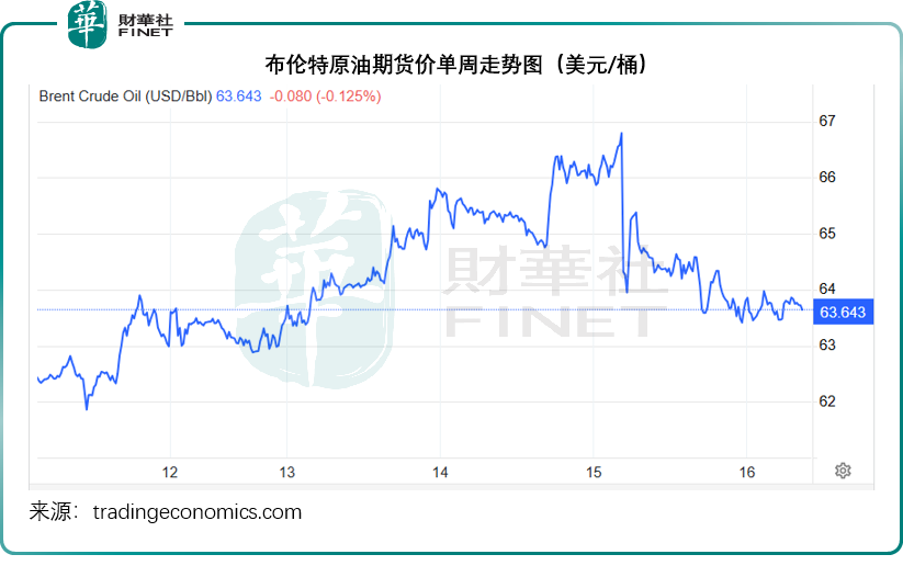 在美元走强,地缘局势似有缓和迹象的共同推动下,油价回落,见下图,布伦特原油期货价从1月15日早段的66.84美元跌至如今约63.63美元,跌幅超4.8%。金价也从4,630美元以上回落至4,600美元以下。