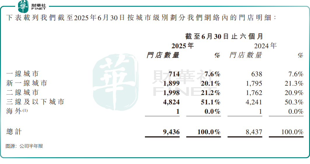 作为该赛道的领先企业之一,沪上阿姨将三线及以下城市视为重要的增长引擎,通过密集的门店网络与本地化的产品创新,加速抢占市场份额。根据其2025年半年报,公司在三线及以下城市的门店数量已达4824家,占总门店数的比例进一步提升至51.1%。