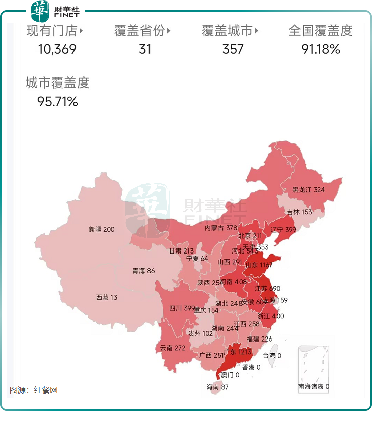 在门店扩张方面,随着现制茶饮行业进入“淘汰赛”阶段,中小品牌因供应链能力弱、资金有限等问题加速退出市场,市场份额持续向头部品牌集中。沪上阿姨享受到了市场红利。根据红餐网数据,截至目前,沪上阿姨门店总数已突破1万家,达10369家,规模仅次于蜜雪冰城和古茗;业务覆盖全国357座城市,城市覆盖率达95.71%。多品牌发展策略与持续的渠道扩张,共同推动了公司营收与利润规模的增长。