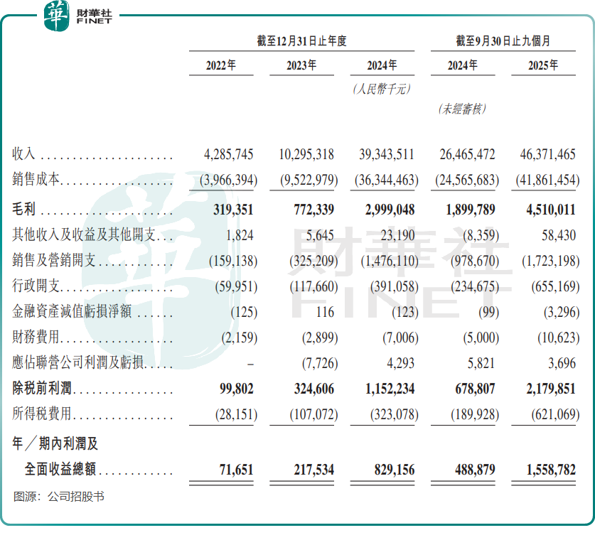 得益于快速拓店,鸣鸣很忙经营业绩持续攀升。营收从2022年的42.86亿元(单位人民币,下同)增长至2024年的393.44亿元,年复合增长率达203.0%;2025年前三季度营收达463.71亿元,同比增长75.2%,继续保持高增长势头。