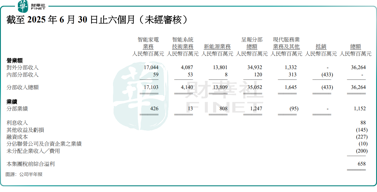 作为曾经的“彩电大王”,创维集团的智能家电业务受行业需求萎缩、头部品牌竞争加剧的双重挤压。2025年上半年,该业务营业额为170.74亿元,同比增速已不足10%,且该业务分部的业绩贡献仅略超光伏业务的一半,昔日“现金奶牛”的地位已然动摇。