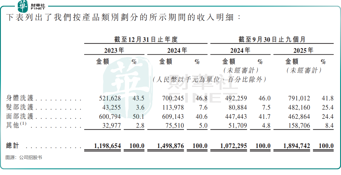 在核心品类稳固的基础上,公司成功培育第二增长曲线,2025年前9个月发部洗护收入达4.82亿元(单位人民币,下同),同比激增接近500%,占总收入比重由上年同期的7.5%提升至25.4%。