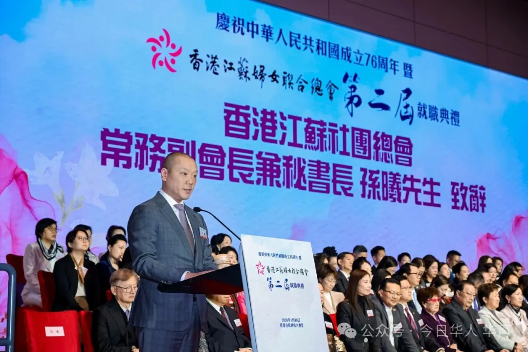 香港江苏社团总会常务副会长兼秘书长孙曦代表总会致辞,妇女总会自成立以来始终坚守宗旨,凝聚在港江苏妇女力量,积极推动苏港文化、教育等多领域合作交流,展现了新时代江苏女性的智慧与风采。他坚信,在新一届领导班子带领下,妇女总会将持续发扬爱国爱港精神,为江苏发展与香港繁荣稳定注入更多巾帼力量。