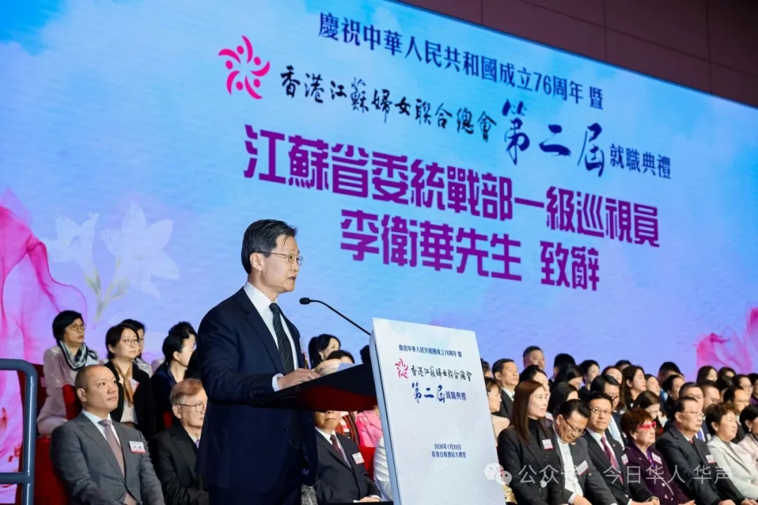 江苏省委统战部一级巡视员李卫华对妇女总会过往在维护妇女儿童权益、促进女性全面发展、深化苏港融合等方面的工作给予高度评价。他提出三点希望:一是坚定政治方向,深入领会中央精神,坚决贯彻“一国两制”方针;二是发挥自身优势,搭建优质平台支持女性发展;三是深化苏港交流,拓展两地在多领域的合作。他同时明确表示,江苏省委统战部、省海外联谊会将一如既往支持妇女总会发展。