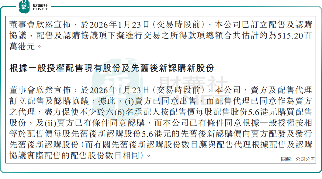 具体操作中,公司大股东ZTan Limited先向独立投资者出售9200万股旧股,配售价定为每股5.6港元,较前一交易日收盘价折让约12.09%;随后,公司再按同样价格向该股东定向发行9200万股新股。这一操作形成“出售旧股、认购新股”的闭环,最终为公司净筹集约5.01亿港元。配售股份约占扩大后总股本的6.77%,大股东持股比例仅轻微稀释,控制权保持稳定。