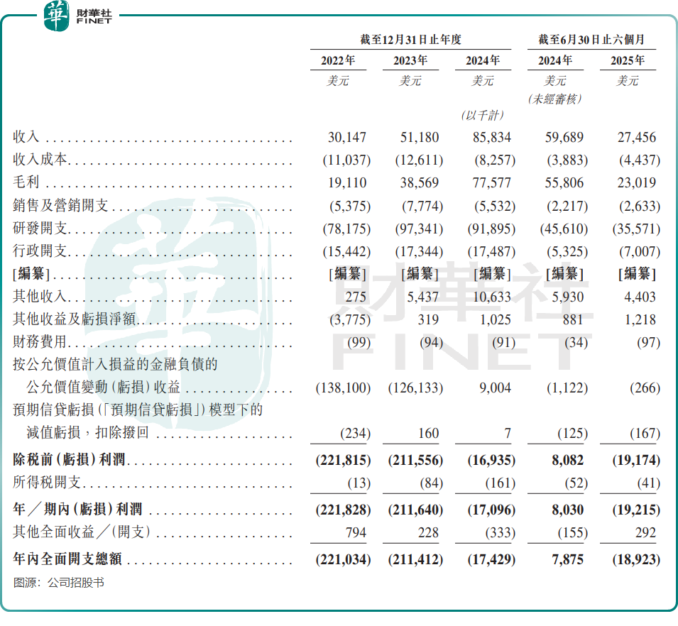 财务数据揭示了英矽智能严峻的现实,2022年至2025年上半年期间,公司累计亏损已达约4.7亿美元,2025年上半年净亏损仍有1921.5万美元,且公司经营现金流持续为负。