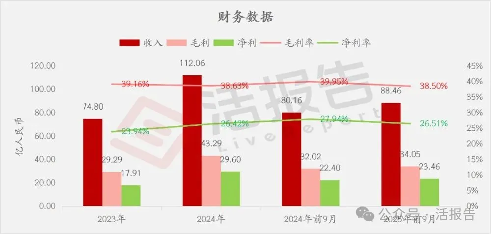 收入分别约为人民币74.80亿、112.06亿、80.16亿、88.46亿,2025年前9月同比+10.36%;