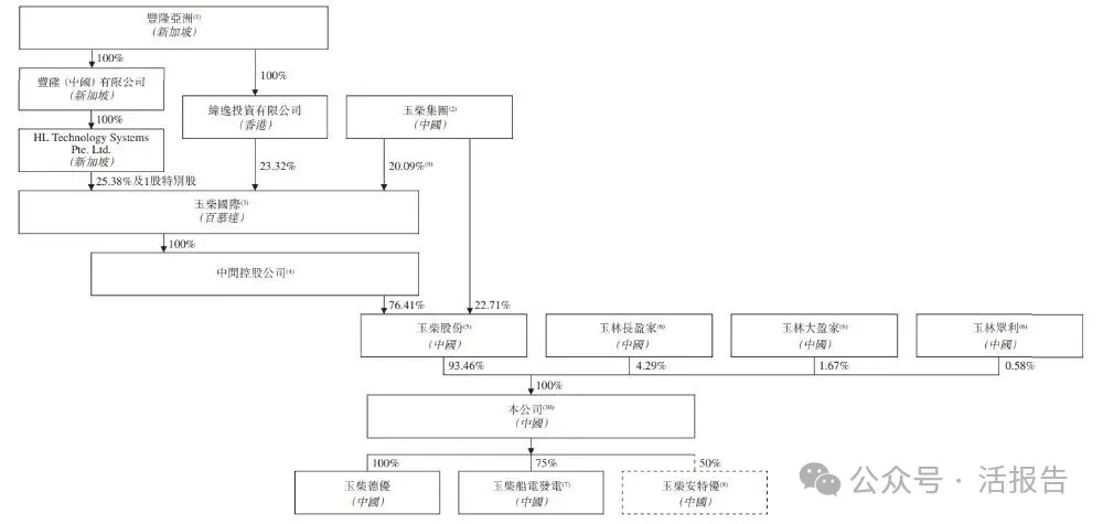 丰隆亚洲(H22.SG),通过玉柴国际(CYD.US)、玉柴集团控制的玉柴股份,持股93.46%;