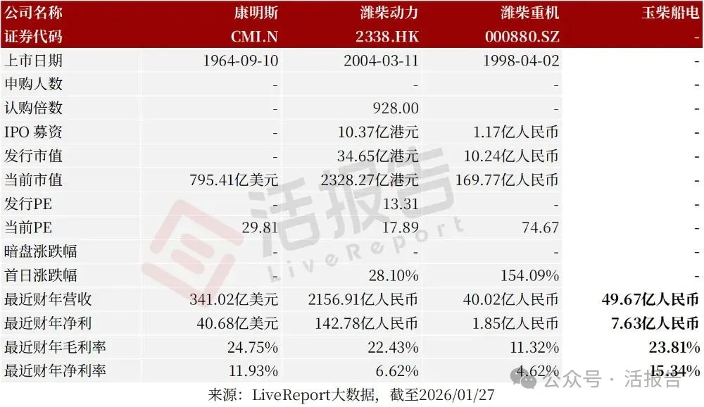 2026年1月27日,玉柴船电首次向港交所递交招股书,拟在香港主板上市,联席为中国银河国际和招商证券国际。公司控股股东玉柴国际(CYD.US)于1994年在美国纽交所上市,截至2026年1月28日的市值达17.86亿美元。