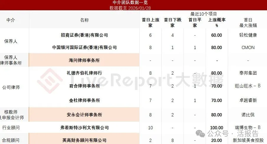 据LiveReport大数据统计,玉柴船电中介团队共计9家,其中保荐人2家,近10家保荐项目数据表现平平;公司律师共计3家,综合项目数据表现尚可。整体而言中介团队历史数据表现中规中矩。