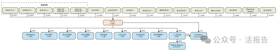 洪国志先生、何泽霖先生、张雨沂女士、员工持股计划平台万物可租及享租未来分别持股20.73%、14.95%、4.34%、6.15%、5.05%;
