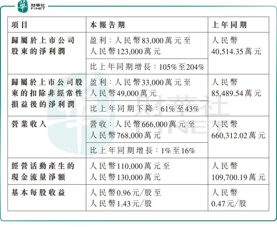 现金流方面,报告期内,经营活动现金流量净额预计达11亿元-13亿元,而上年同期为10.97亿元。