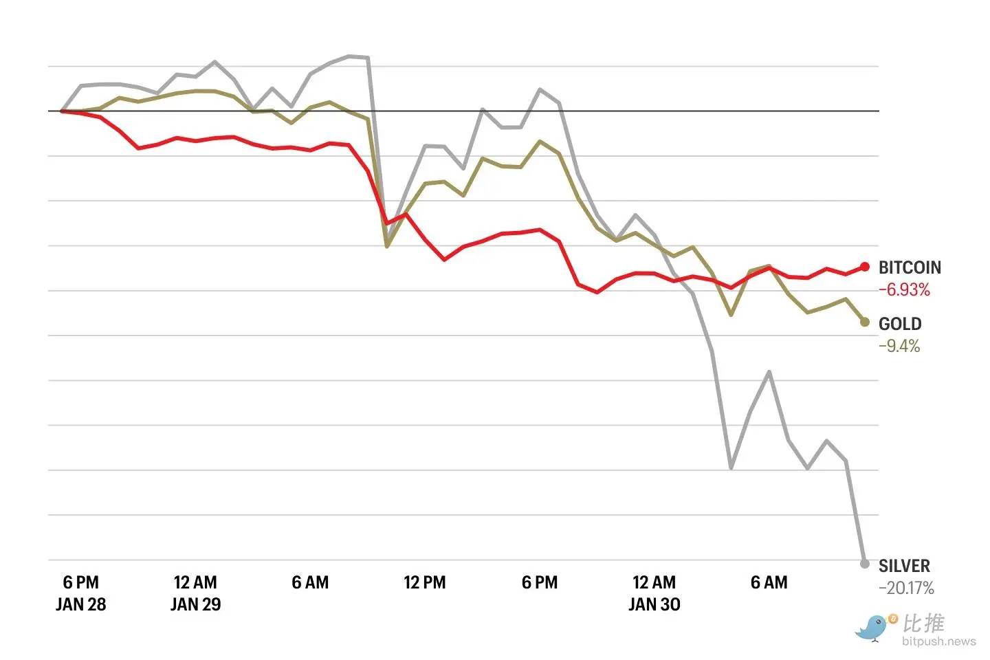 美东时间1月30日(周五),此前一路上歌猛进、不断刷新历史新高的贵金属市场突遭“寒流”。