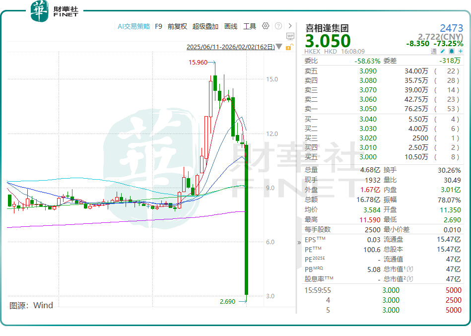 在2月2日的港股市场,喜相逢集团(02473.HK)上演了一场“惊魂时刻”。