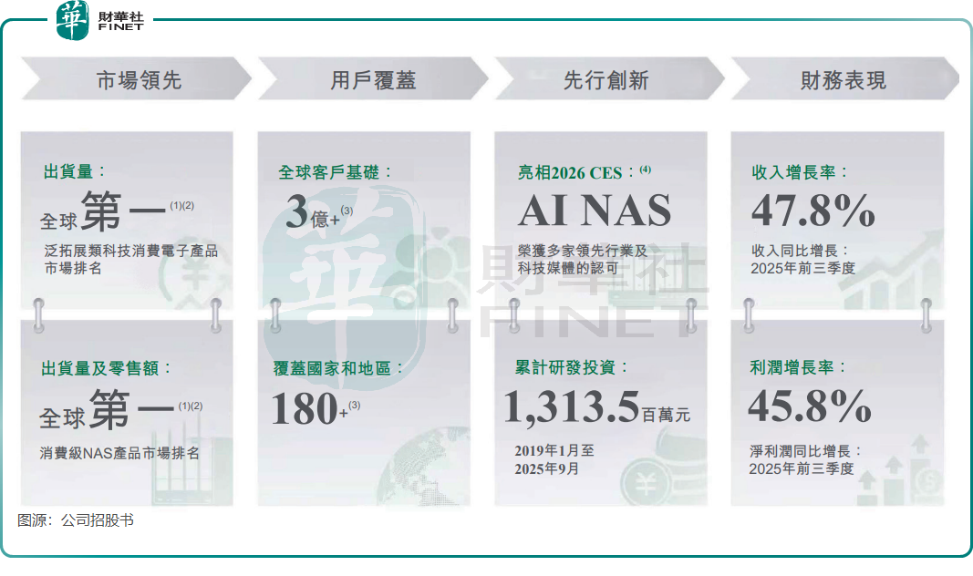 在市场份额上,绿联科技表现亮眼。根据弗若斯特沙利文数据,2025年按出货量计,其在泛拓展类科技消费电子产品市场位居全球第一;按零售额计,全球充电产品市场排名第二;在智能存储领域,更是全球最大的消费级NAS品牌,2025年出货量和零售额市场份额分别为20.6%和17.5%。