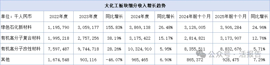 拆解其业务结构上看,公司主要把业务划分为两大板块,分别为大化工板块及大健康板块,其中大化工板块为公司主要收入来源及最大的增长驱动力,截至2025年前十个月大化工板块收入占比约96.5%。