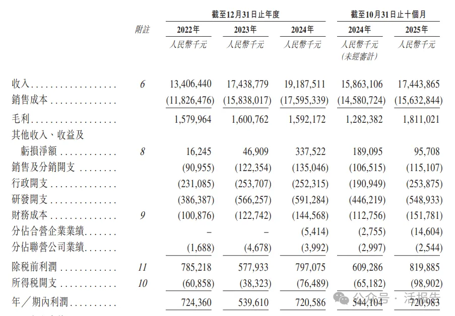基本面方面,公司过去三年收入分别为134.06亿、174.39亿及191.88亿人民币,年复合增长为19.63%;净利则分别为7.24亿、5.40亿及7.21亿人民币。截至2025年10月30日前十个月,公司收入及净利分别为174.44亿及7.21亿人民币,同比增长分别为9.97%及32.51%。