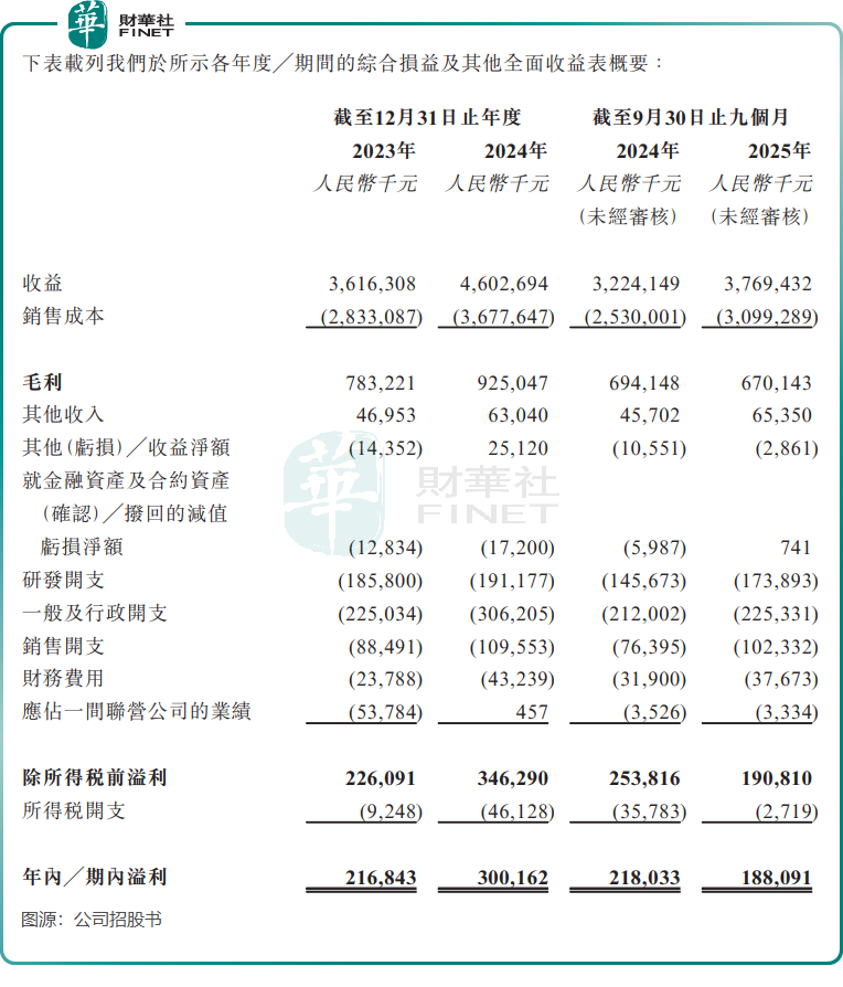 尽管伊戈尔收入规模持续扩张,2023年至2025年前三季度分别实现营收36.16亿元(单位人民币,下同)、46.03亿元、37.69亿元,但“增收不增利”的问题逐渐凸显。2025年前三季度,公司期内溢利1.88亿元,同比下降约13.7%。