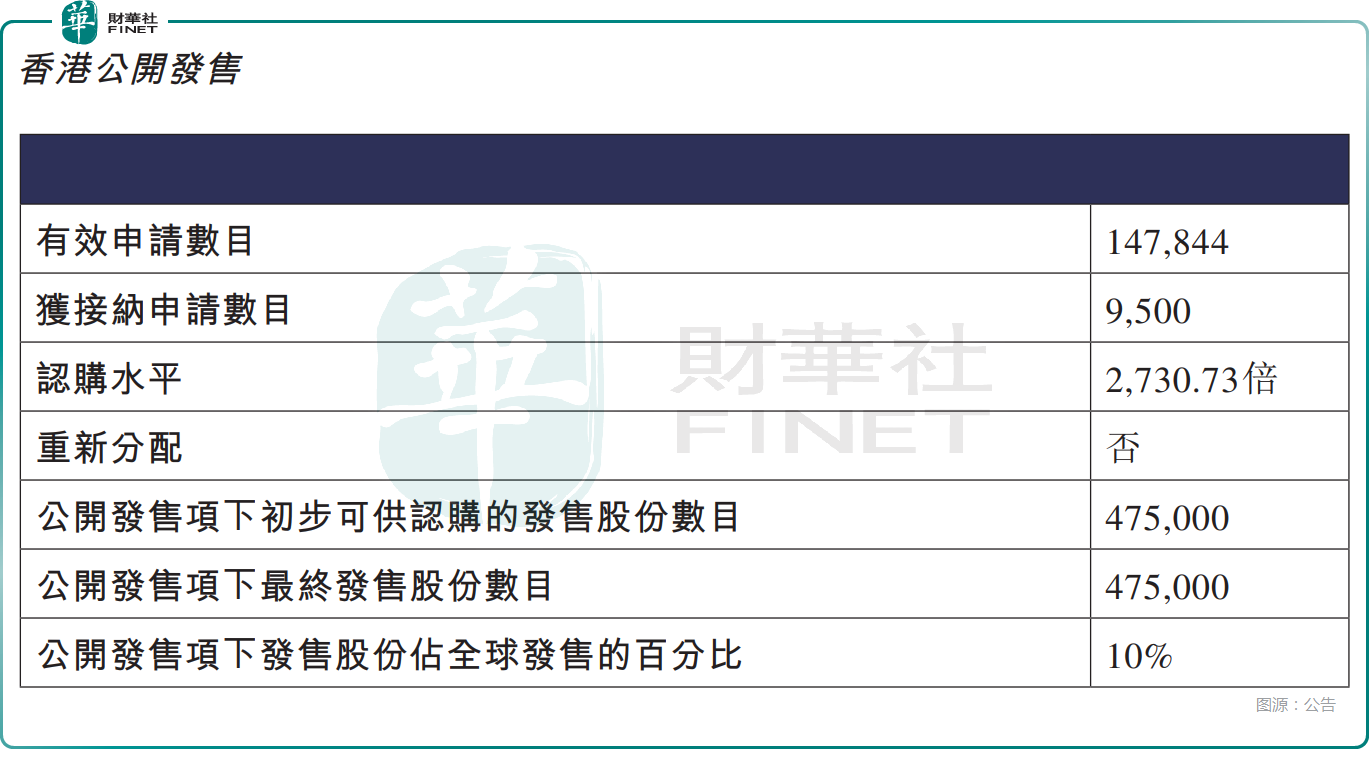 从日前招股阶段的表现来看,香港公开发售方面,卓正医疗获2730.73倍认购,公开发售的发售股份最终数目为47.50万股股份,占发售股份总数的约10.00%。有效申请数目约为14.78万份,受理申请数目9500份。