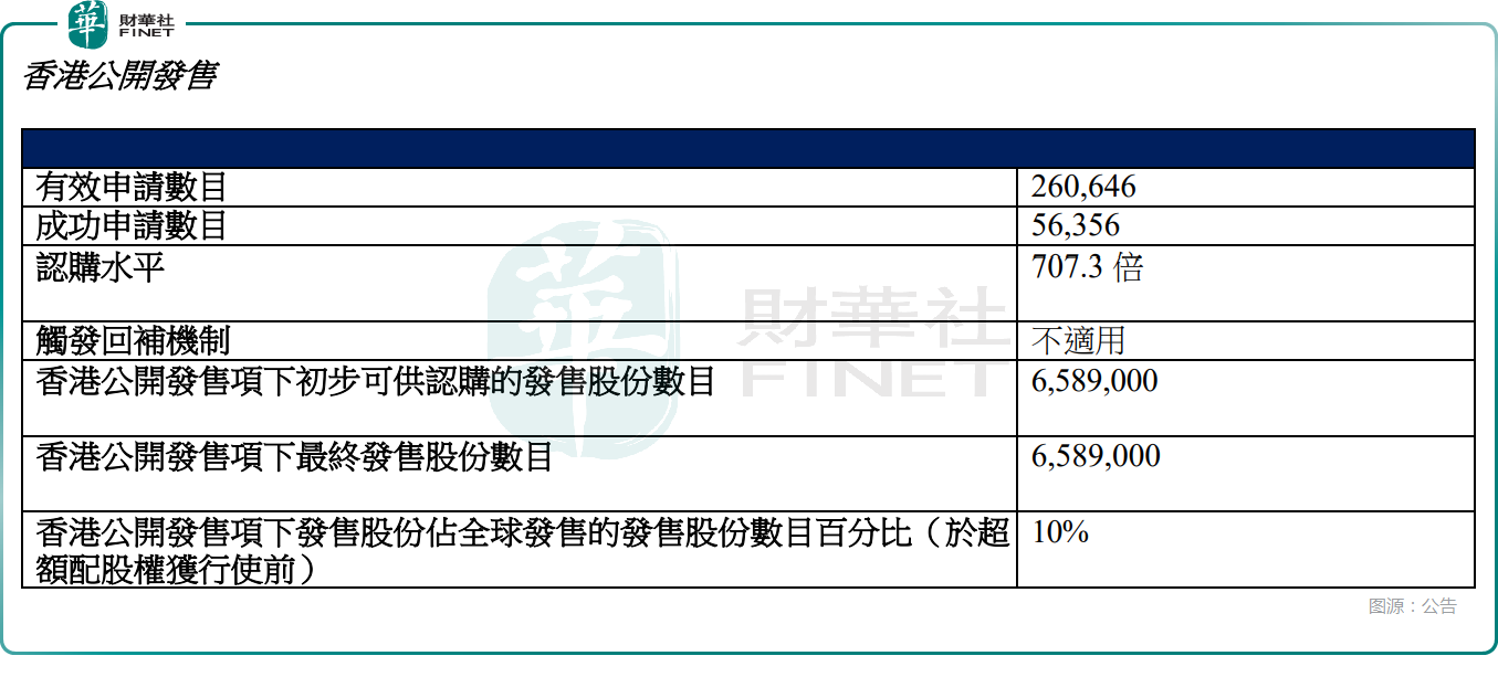 公告显示,在日前的招股阶段,香港公开发售方面,澜起科技获707.3倍认购,公开发售的发售股份最终数目为658.9万股,占发售股份总数约10%,共收到26.06万份有效申请,受理申请数目约56356份。